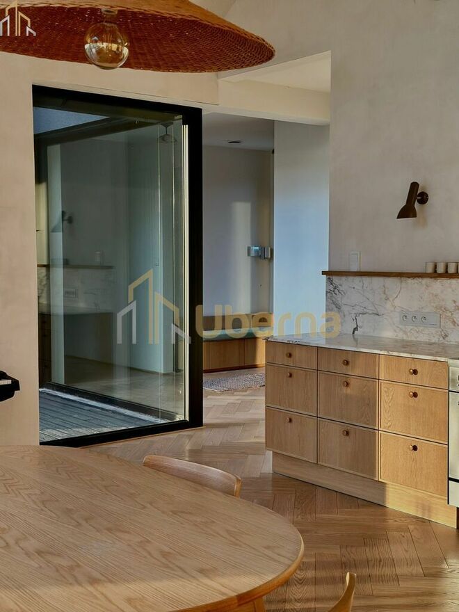 Salon: Doświetlony olbrzymim, 5-metrowym aluminiowym oknem przesuwnym